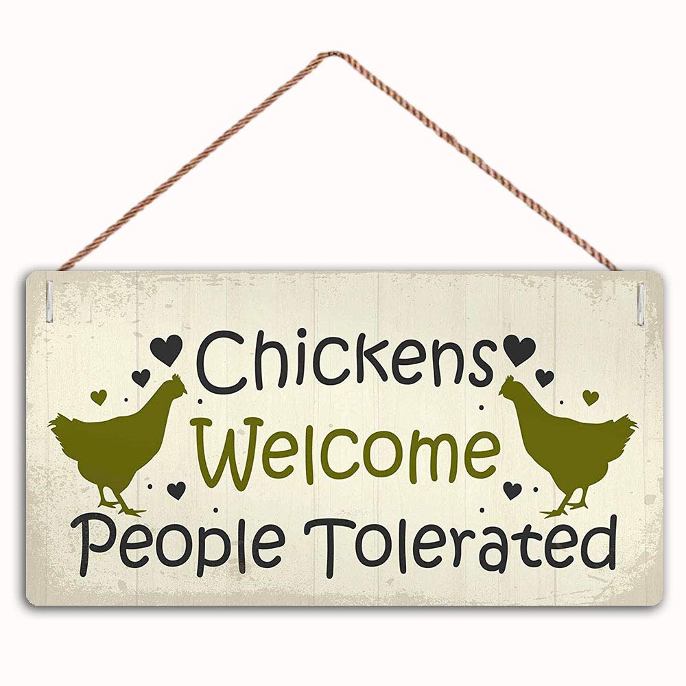 MAIYUAN Chickens Welcome People Toleratd Sign Home Decor Wood Sign Plaque 12″ x 6″ Hanging Wall Art, Decorative Funny Sign,Garden Sign(FC1-MBH96)