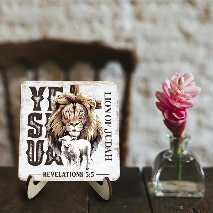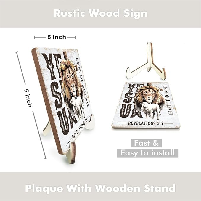 PRODUCT INCLUDES: 1PCS Wood Sign (5.1x 5.1 inches) + 2PCS Wooden Stand (The wooden sign base is designed in two parts, cross-assembled to maximize the bottom contact area and achieve a perfect, will not block the content of text and pattern, and stable and non-dumping effect). Fast & Easy to install. It’s sized to fit just right on your desk or you can put it in any position you want without taking up too much space.