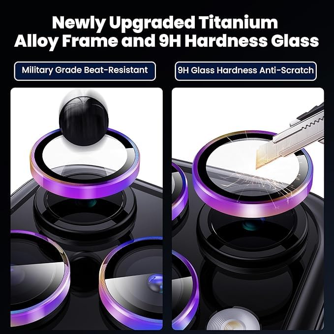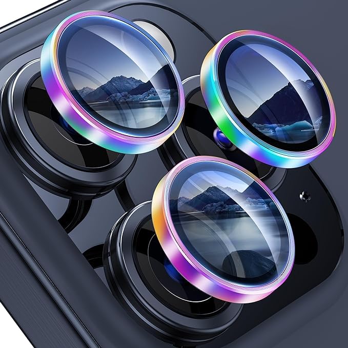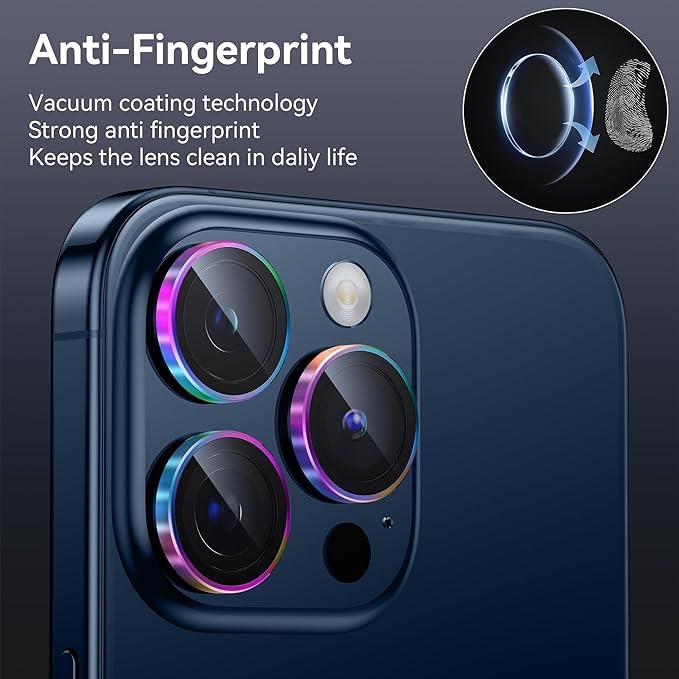 MAYBAL Camera lens Designed for iPhone 15 Pro and iPhone 15 Pro Max. Made of tempered glass and aluminum alloy, the camera lens protector prevents damage from drops, daily scratches and effectively protects iphone 15 Pro camera ring The unique night circle anti-glare design can help you improve the stability and color saturation of the camera at night, making your photos more magical. You can use the included mounting kit to clean the lens and then install the film, the whole process is simple and fast without leaving any air bubbles. The special 3M adhesive allows the lens film to stick tightly to the lens and not easily fall off. iphone 15 Pro Max camera lens protector