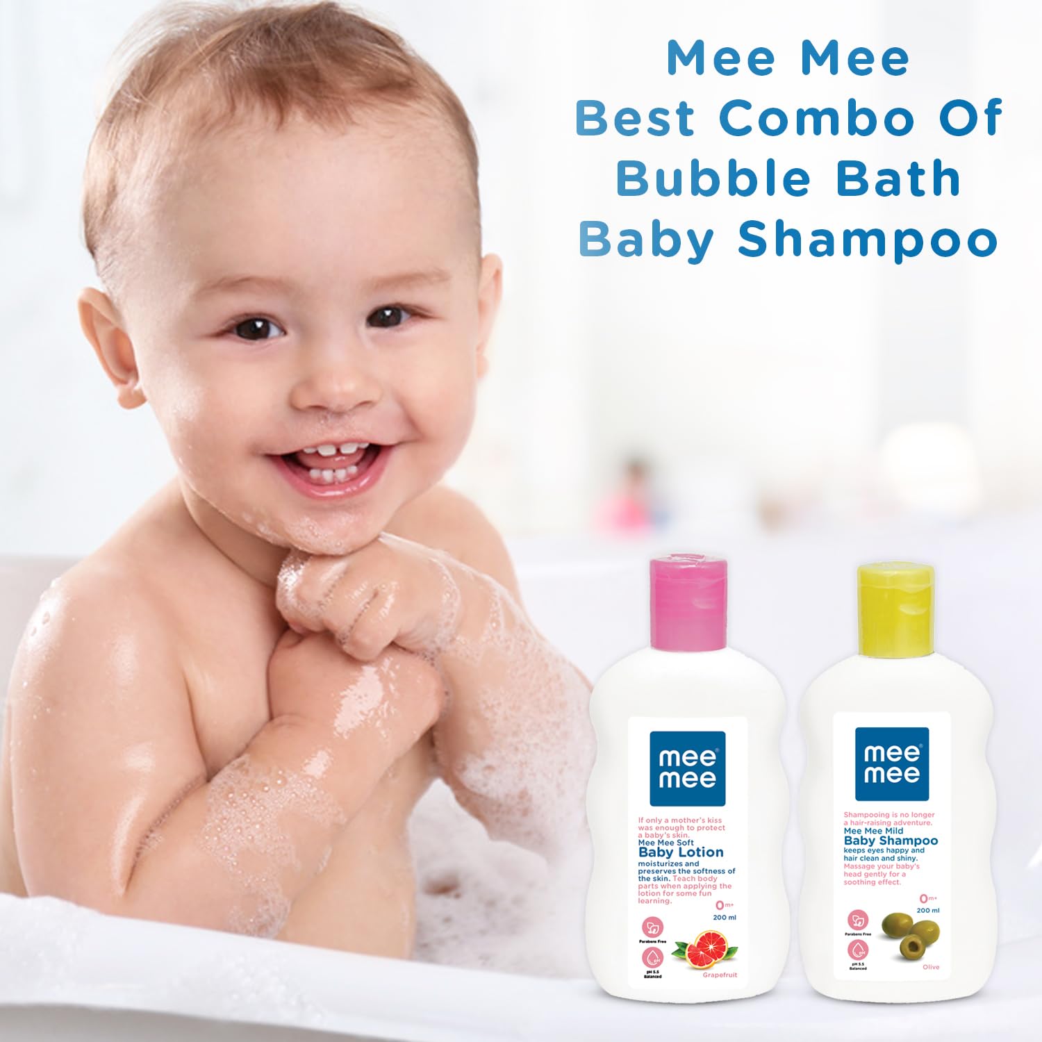 All Mee Mee products are carefully made to the highest safety standards. Mee Mee baby lotion is the non greasy formulation gently protects and moisturizes your baby’s delicate skin. Specially made for your baby’s skin it is absorbed easily contains chamomile extract as the natural moisturizing and soothing agent. And For your child’s safety and health. All Mee Mee Products are carefully made to the highest safety standards. Mee Mee baby shampoo is the “mild” formulation with the conditioner cleanses the scalp and leaves hair naturally clean and shiny. Specially made for your baby’s hair and scalp, it comes with a “no tears” formula and contains natural extracts.