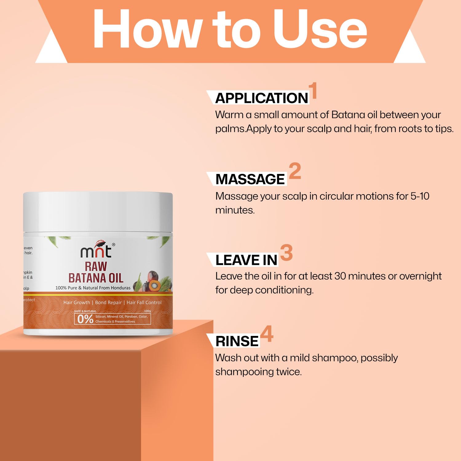 ✔ HAIR GROWTH: MNT pure raw Batana Oil boasts a wealth of essential fatty acids, antioxidants such as vitamin E, and other nourishing nutrients that support scalp and hair follicle health.