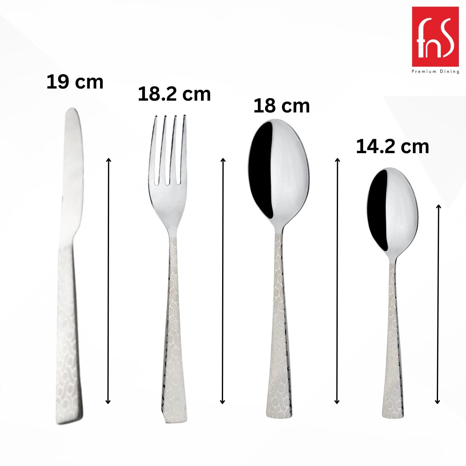 [FANCY DESIGN]: Beautiful design is crafted on handle of cutlery food grade safe and rust free, Fancy edge, unique flatware featured with nice design on handle, highly mirror polished surface keep the set shiny all the time and look as good as brand new, modern set match well with your existing tableware, evaluate your daily meal into a fine dining experience.