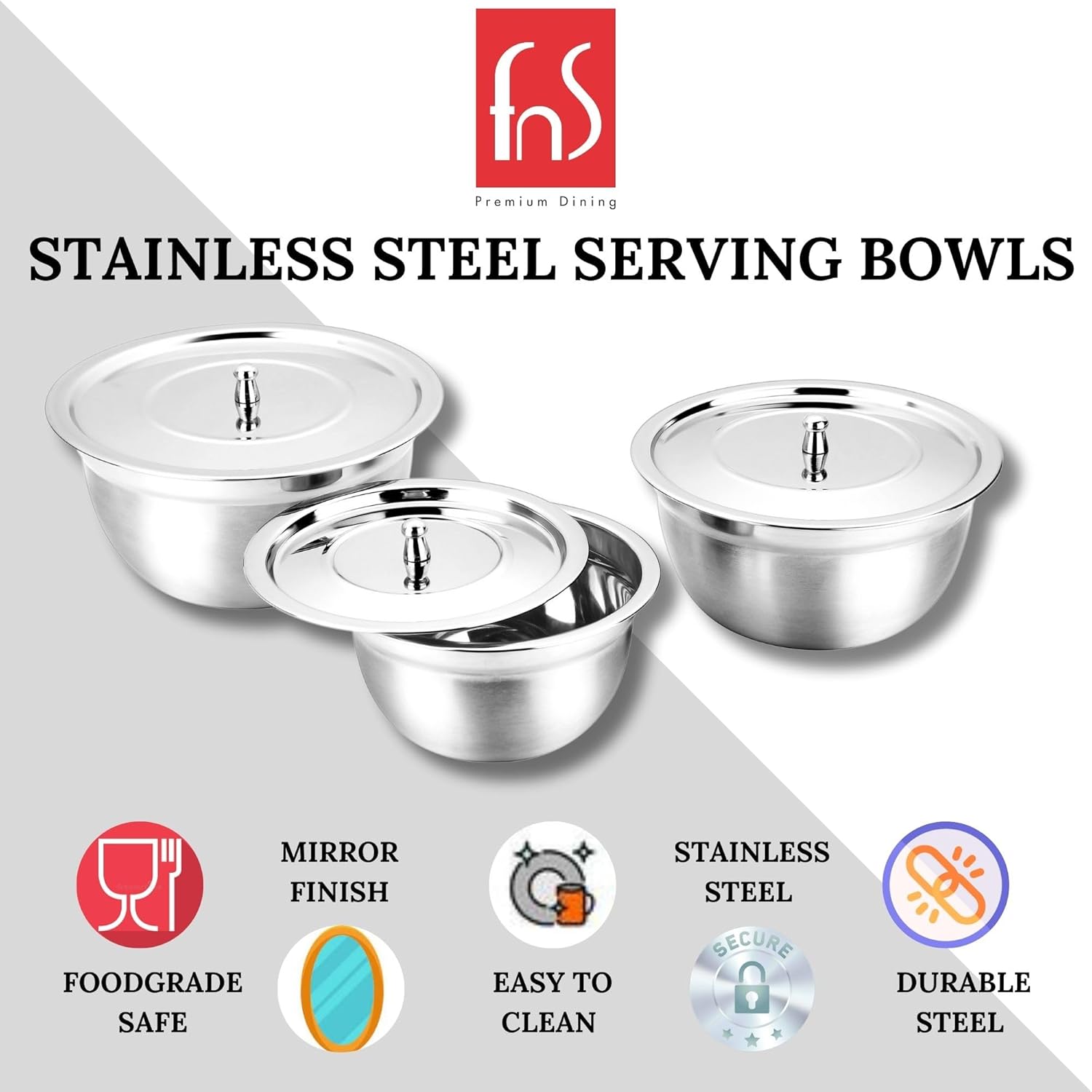 Food-Grade Stainless Steel Serving Bowl for Quality Lifestyle – Made from premium Food-Grade stainless steel with a mirrored exterior, bright, elegant, beautiful, and Cadmium Free. Well-loved classic appearance with practical design will make you fall in love with serving