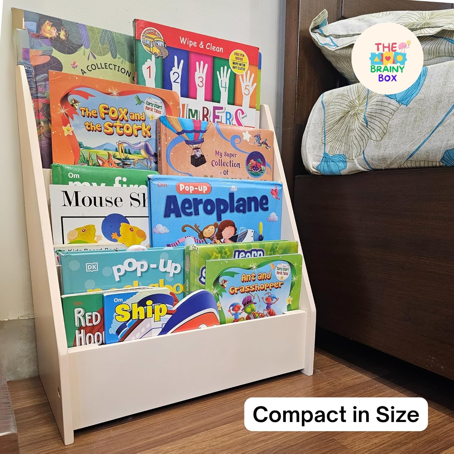 Organize with purpose—The Brainy Box Montessori Bookshelf is where early learning begins. This beautifully handcrafted wooden bookshelf is designed to empower young children by giving them easy access to their favorite books and toys. The front-facing display allows little ones to independently choose what they want to read or play with—just like the Montessori method recommends. Perfect for nurseries, playrooms, or study areas, this bookshelf also doubles as a toy organizer. Its low profile and smooth edges make it completely child-safe, while its stylish, eco-conscious design ensures it looks great in any modern space. Whether you’re a new parent building a thoughtful space or looking for a unique gift idea, this bookshelf is a long-lasting, practical addition to any child’s world. Key Features: ✔️ Montessori-style front-facing display ✔️ Durable eco-friendly wood with smooth finish ✔️ Stores books, toys, and learning supplies ✔️ Rounded edges for safety ✔️ Ideal for ages 1–6 years ✔️ Easy to assemble and clean ✔️ Great gift for new moms, toddlers & preschoolers Brand: The Brainy Box Material: Solid wood (eco-friendly, non-toxic) Age Range: 1 to 6 years