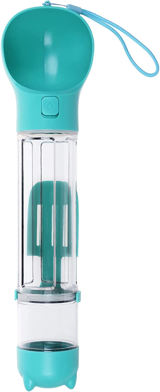 đă3-IN-1 Combination Dog Water Bottleă The dog water bottle is an upgraded designed bottle. It is composed of water cup, food storage cup, and a shovel. In addition, it comes with 5 convenience bags as a gift. It helps your dog drink water easily and you can feed food anytime, anywhere. You can clean the dog’s excrement with the shovel and put it in the attached convenience bag.
