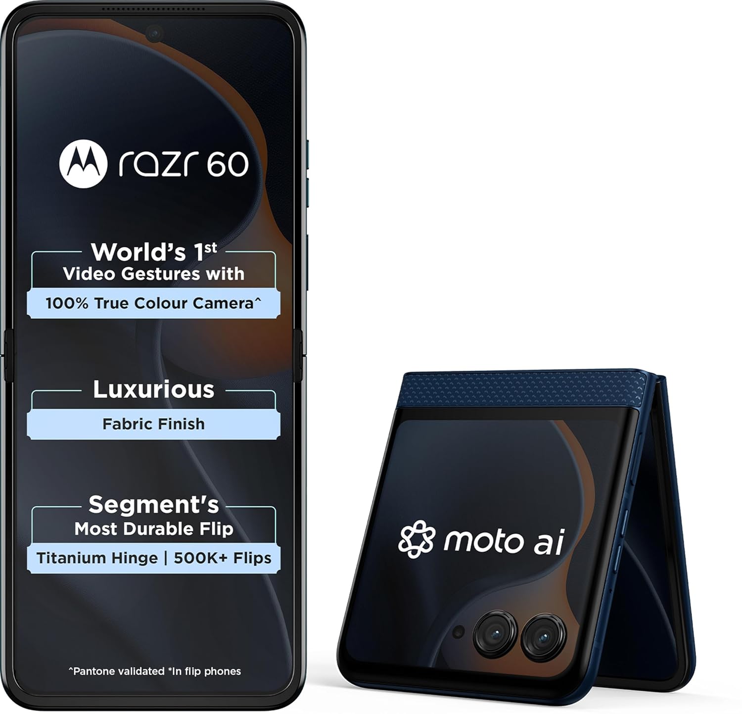 Motorola Razr 60 5G (Pantone Gibraltar Sea, 8GB RAM, 256GB Storage) | 6.9″ Full HD+ Display | 50MP + 13MP Dual Rear Camera | 32MP Front | Dimensity 7400X | 4500mAh Battery