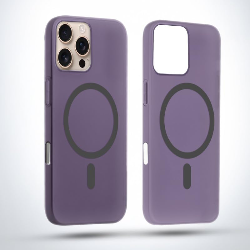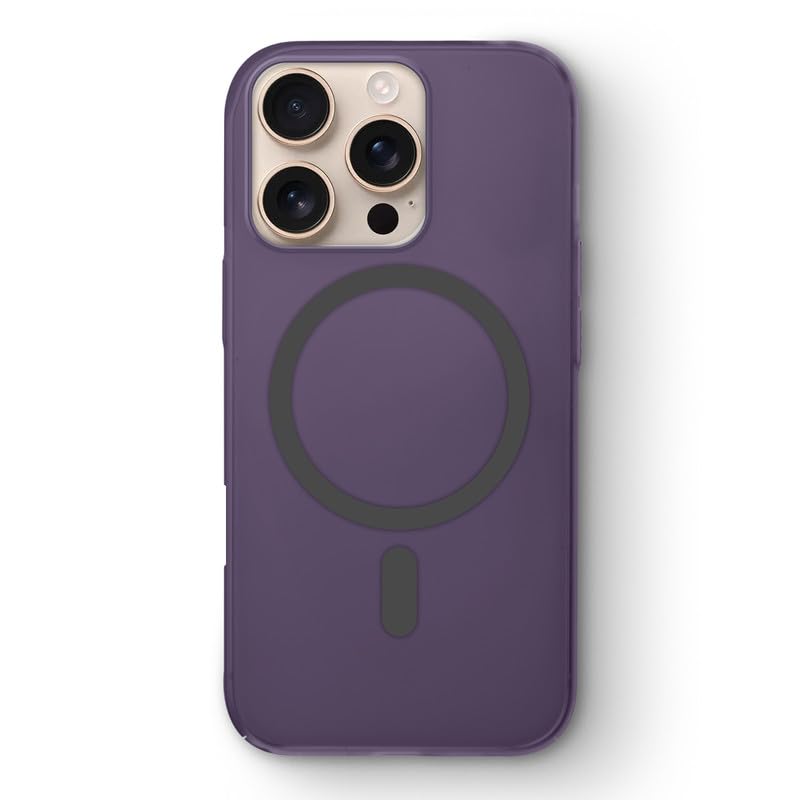 Mr. Case Back Case for iPhone 16 Pro Frosted Semi-Transparent Hard Back | Compatible with Wireless Charging | Thin and Slim Magnetic Back Cover – Dark Purple