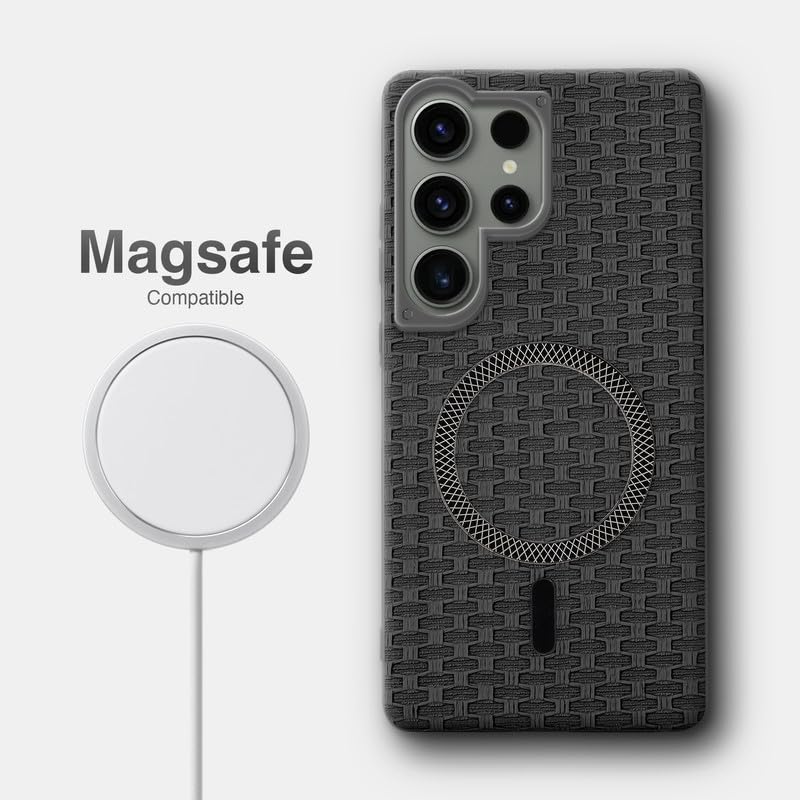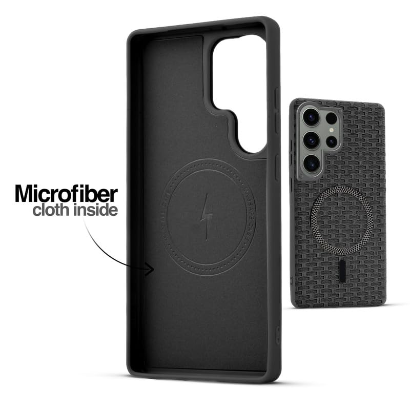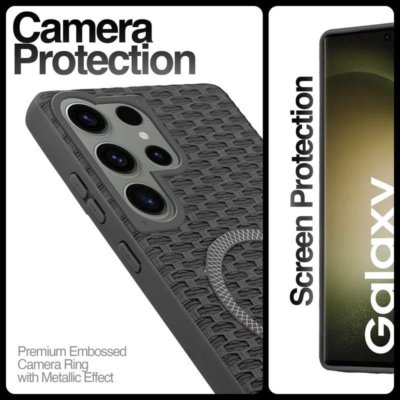 Elevate your Samsung S23 Ultra 5G protection with the Mr. Case Woven Pattern Back Cover : a perfect blend of style, durability, and functionality. Featuring a sophisticated woven texture print, this case offers a unique look that stands out from the crowd while providing excellent grip and anti-slip performance. Made from flexible silicone material, this case provides reliable shock absorption and protection against everyday drops, scratches, and bumps. Its magnetic charging support allows seamless use with wireless charging accessories without the need to remove the case. Designed specifically for your phone, it offers precise cutouts for easy access to all ports, buttons, and cameras. Whether you’re streaming, gaming, or taking calls, this durable and stylish case keeps your phone safe and looking sharp.