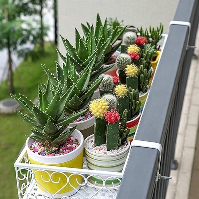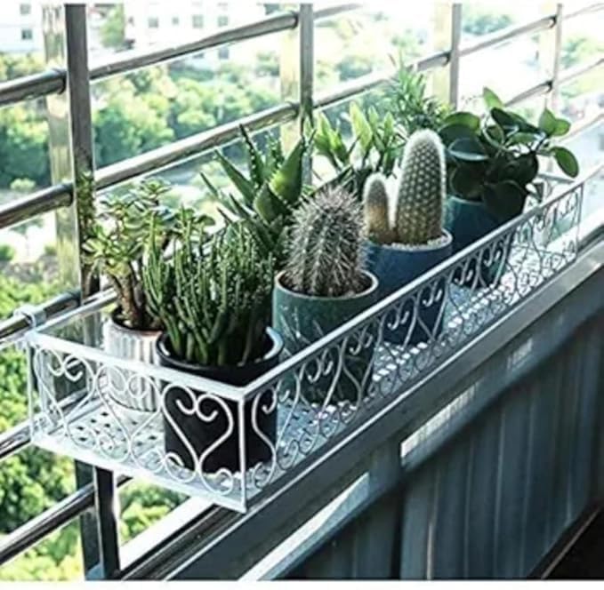 Easy to hang it on the deck rails, patio railings, staircase railing or fences that with sizes within 6cm. Or just let the pot free-standing on balcony.