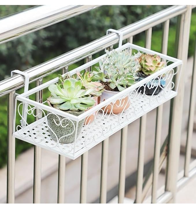 Easy to hang it on the deck rails, patio railings, staircase railing or fences that with sizes within 6cm. Or just let the pot free-standing on balcony.