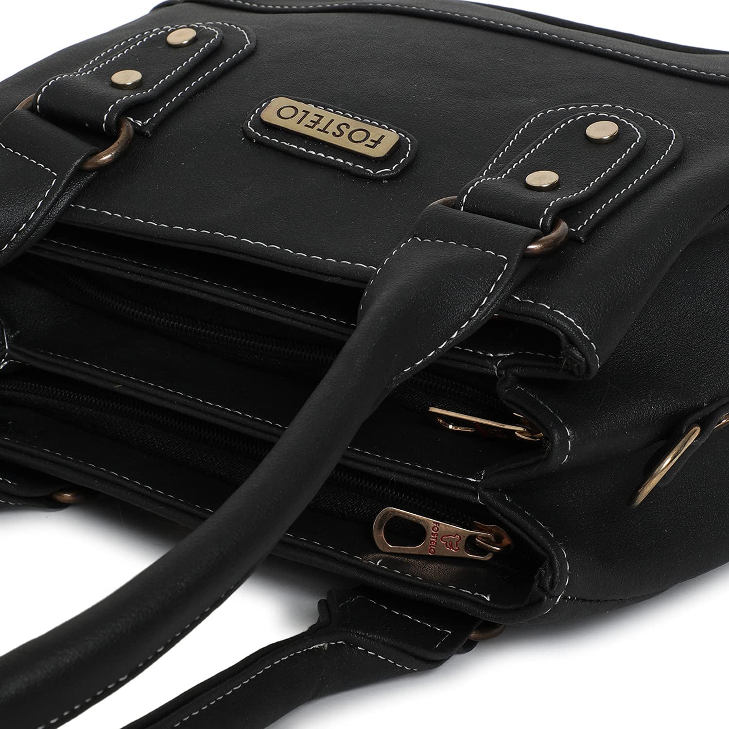 Naples Three Partition Irene Satchel Tote Handbag Women | Ladies Purse | Stylish Shoulder Bag | Gift for Woman | Black