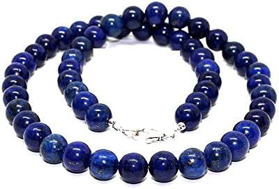 Natural 8mm Lapis Lazuli Gemstone Necklace Blue Beads for Men Women, 19″ Deep Blue Bead, Beach Jewelry, Statement Necklace