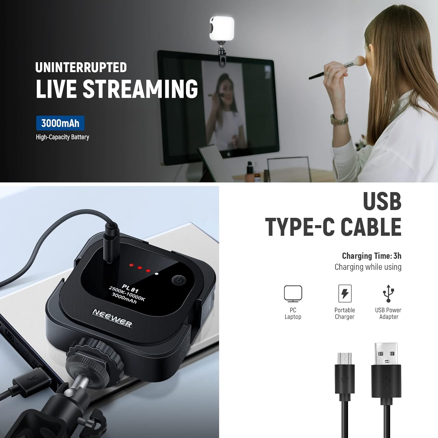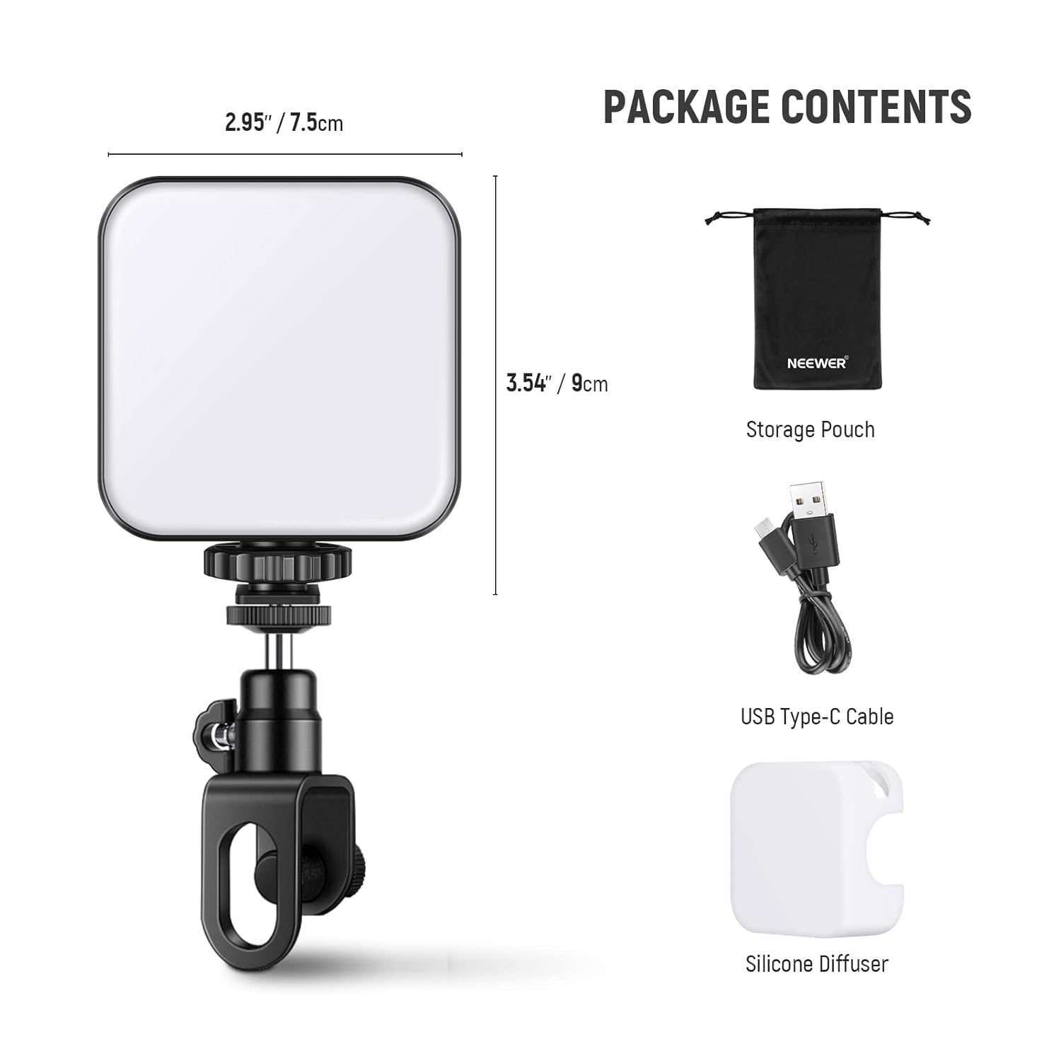 NEEWER Clip On Light Selfie Light for Phone/Laptop, Portable Camera Light with Cold Shoe, 2500K-10000K/3000mAh Rechargeable/LED Video Fill Light for Content Creator, Vlog, Photography (Clip On Light)