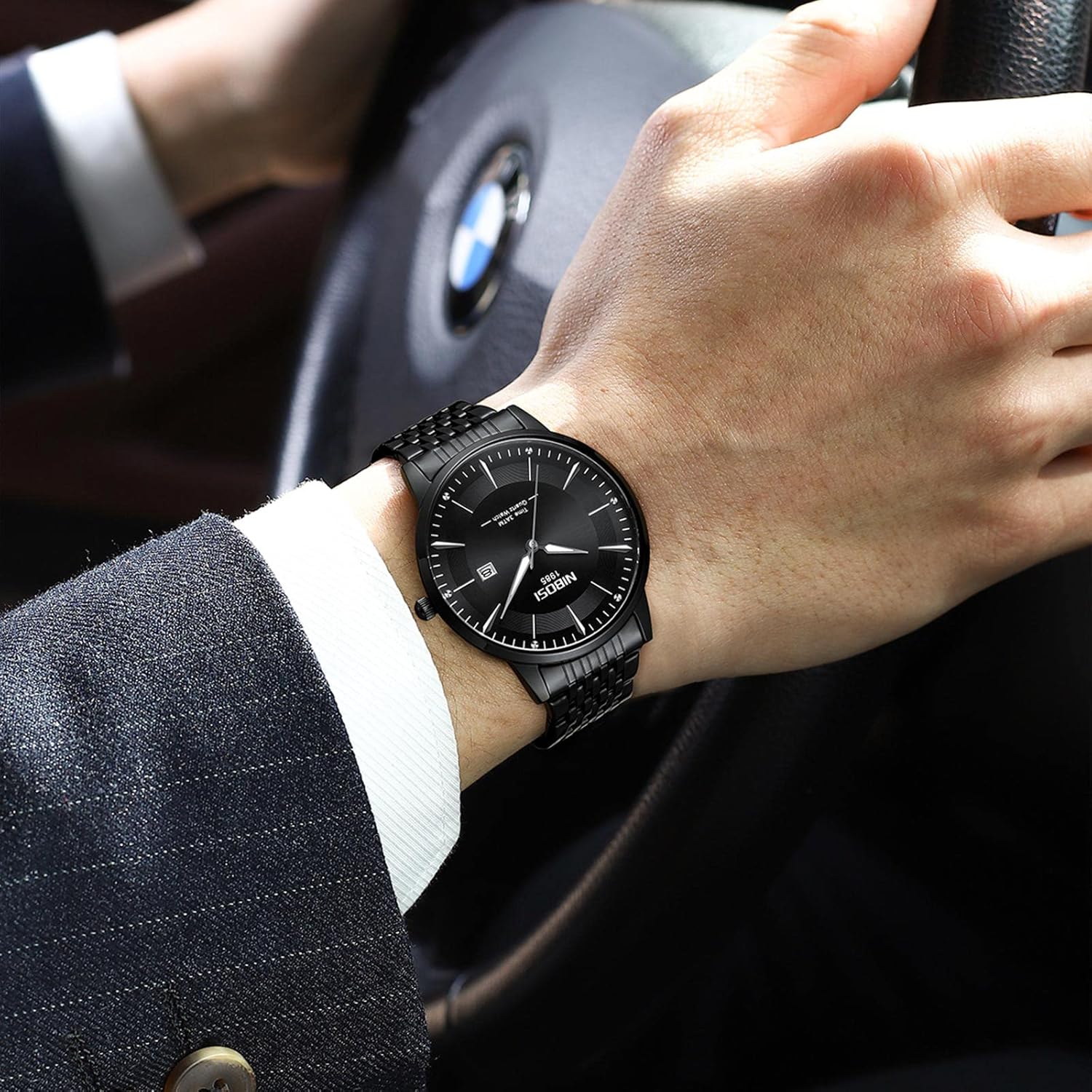 NIBOSI Minimalist Men’s Black Watch Classic Design: Perfect for any outfit and occasion, this unique dainty business watch allows you to easily spice up your outfit and add style to your life. What’s more, this NIBOSI watch comes with stylish gift packaging, so it is the perfect gift for men, husbands, and boys with birthday gifts. 3ATM Daily Life Waterproof: This waterproof watch can withstand sweat, accidental rain, or water splash, but the analog watch is not suitable for bathing, swimming, diving, etc. Dial diameter: 1.69 inches Dial thickness: 0.43 inches Bandwidth: 0.78 inches Watch circumference: 8.66 inches (adjustable) Watch weight: 0.28 lb High Quality: Imported japanese quartz movement and battery imported from Japan provide accurate timing and service for more than 3 years. Premium stainless steel strap; Stylish black stainless steel dial design; Bright condition; Shock resistant, Key scratch resistant surface; Easy-to-read timestamp; Stainless steel case cover. What’s in the Package: 1*Nibosi minimalist chronograph watch 1*Nibosi men’s wrist watch manual 1*Luxury gift watch box 1*Adjustment tool for men’s watches 1*Microfiber cleaning cloth of watch 1*Warranty card of analog watch