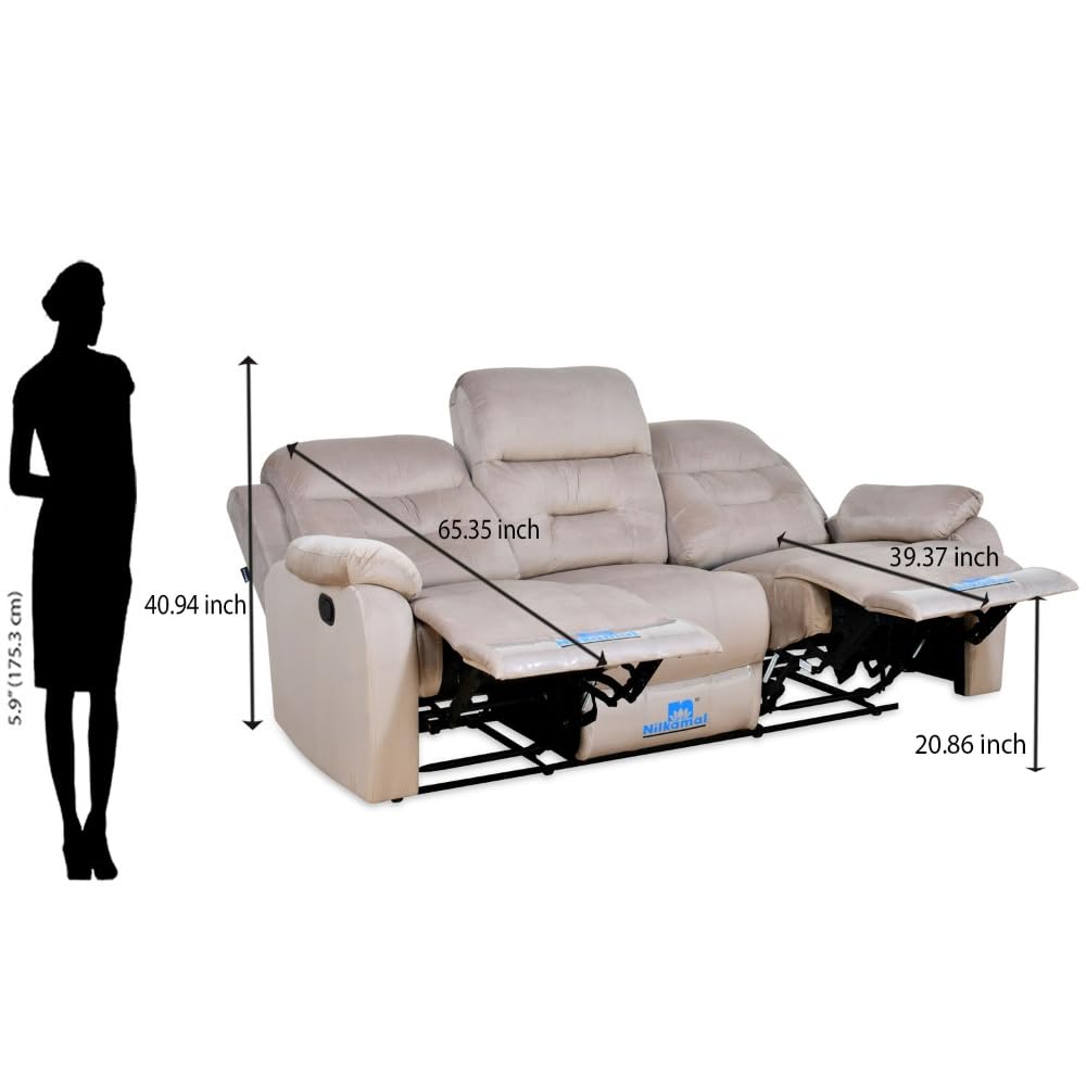 Nilkamal Rosia Solid Pine Wood 3 Seater Recliner Sofa with Pocket Spring (Color – Light Brown; Delivery Condition – Pre-Assembled)