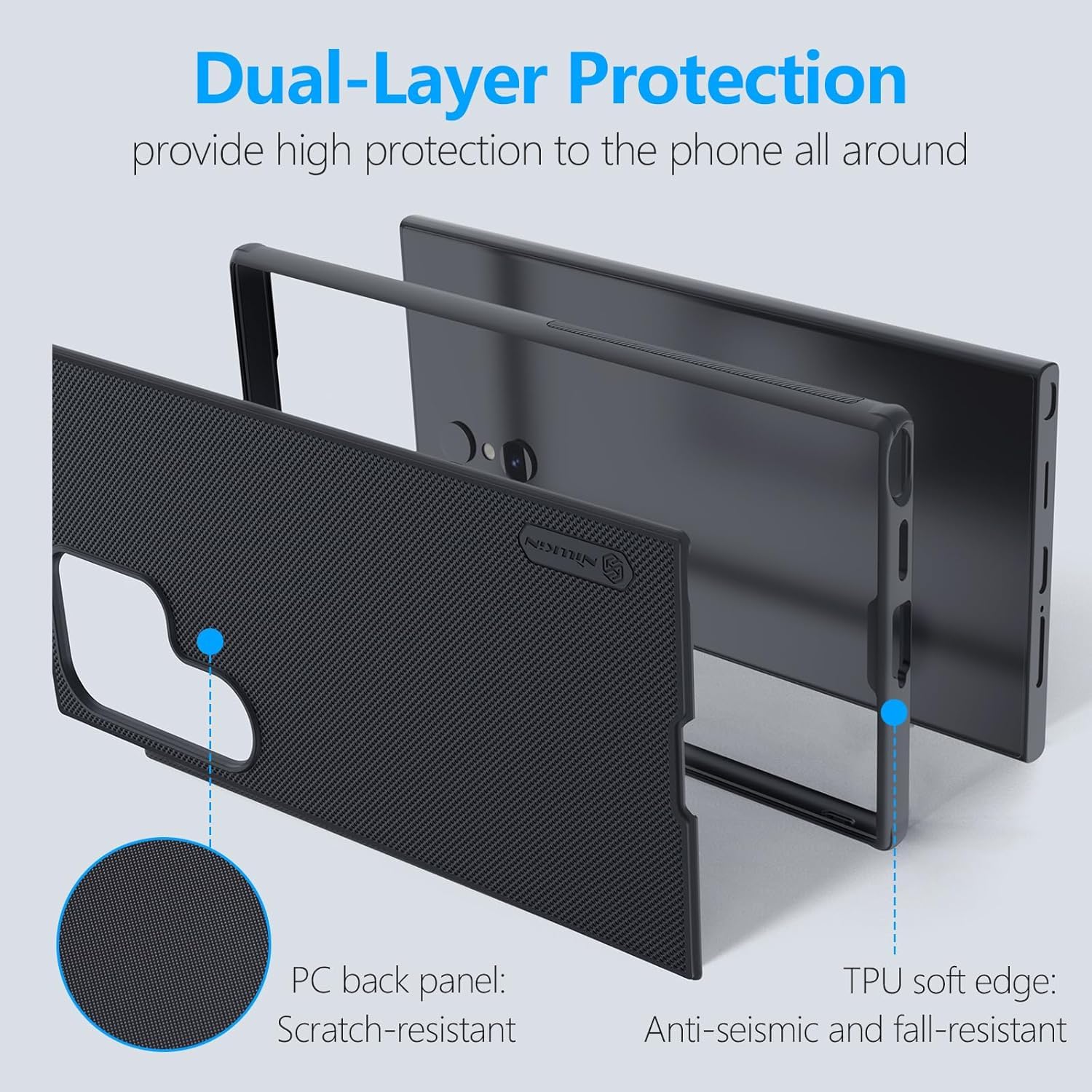 Nillkiin Slim Matte Series for Samsung Mobile Phones [Scratch-Resistant] [360 Full Protection] Shockproof Slim Phone Case for Samsung Galaxy S24 Ultra, Black