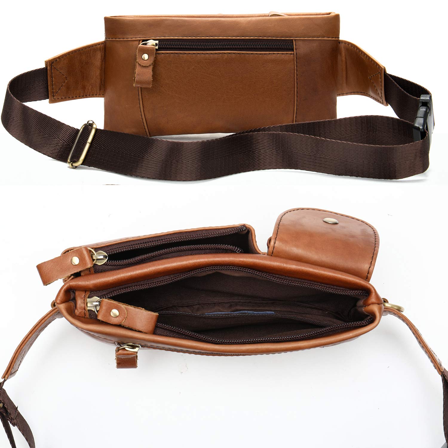 Material:This cool fanny pack made of cow genuine leather,smooth hand-touch feeling,well made and high quality,durable for the daily use