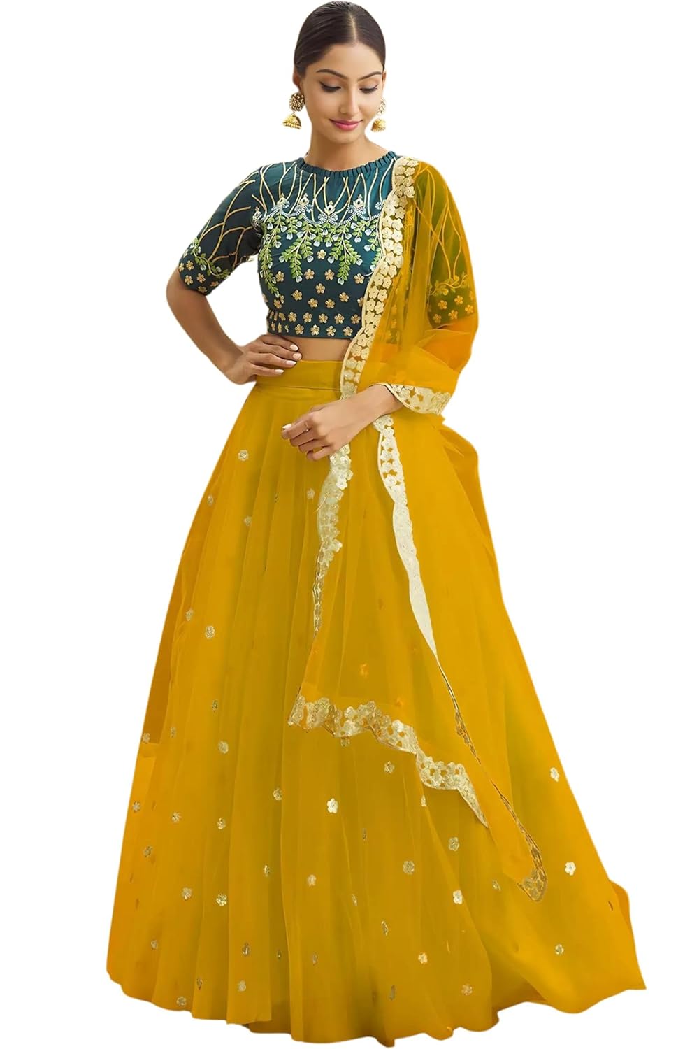 NPLASH FASHION Women’s Net Yellow Butty Semi-stitched Lehenga Choli Set, Free Size