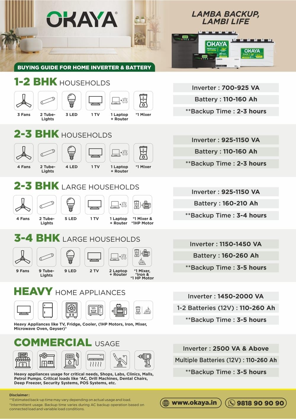 Okaya’s Advanced SJT Inverter Battery is best compatible with Okaya’s Advanced Home UPS/Inverter