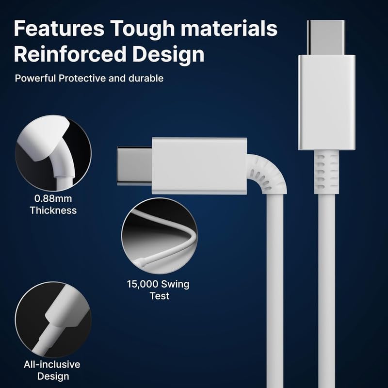 [2X THICKER INSULATION] : The Type-C cable has two times thicker insulation than regular cables thus resulting in superior durability and long life. The thicker insulation also importantly improves signal protection from external noise and interferences