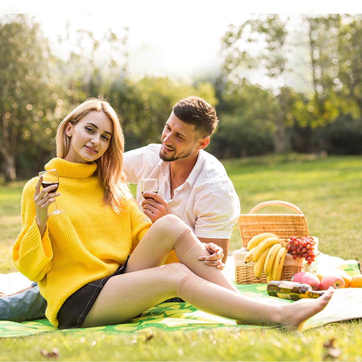 These sheer and nude hue stockings enhancing your outfit’s charm with timeless elegance.