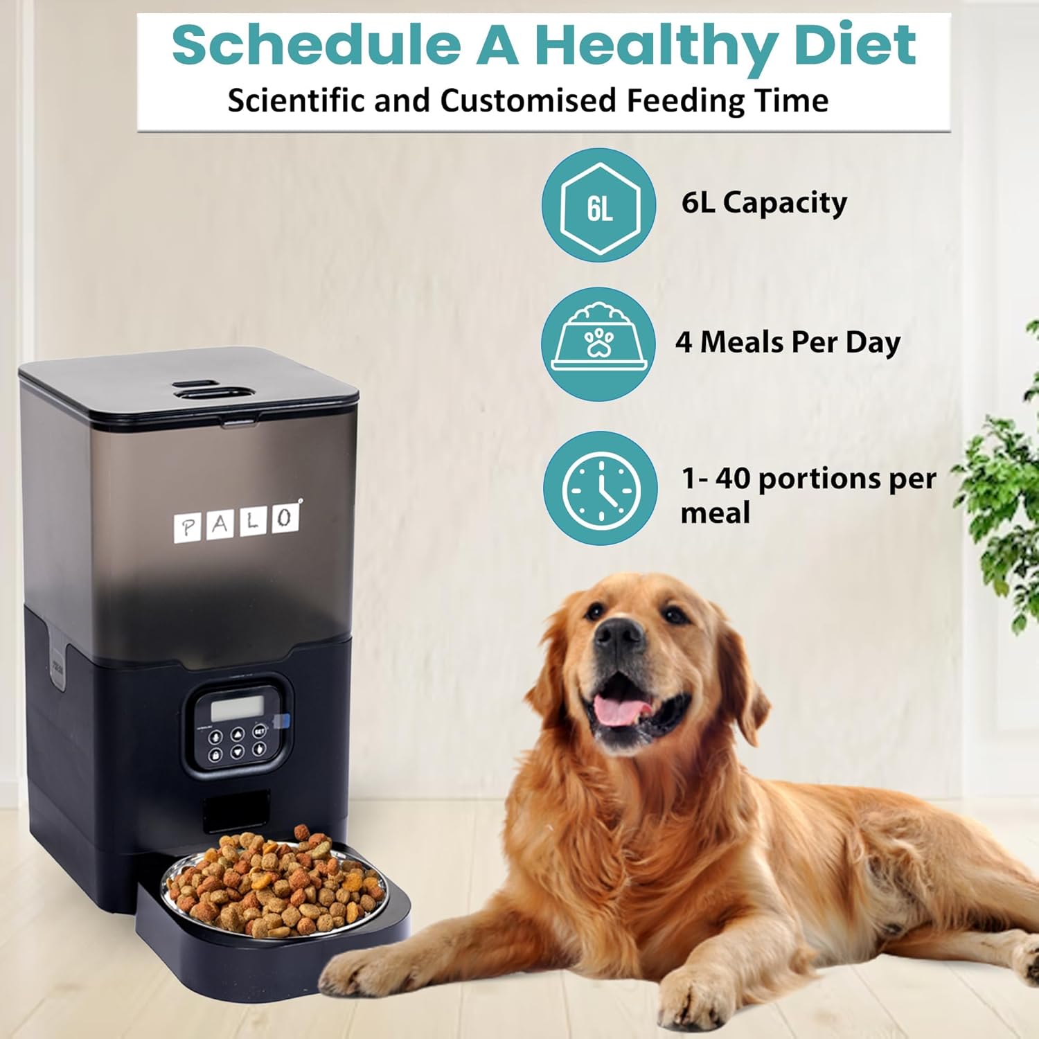 Ensure your pet is fed on time with PALO’s Automatic Pet Feeder. Schedule up to 4 meals per day with portion control, thanks to its programmable timer and 6L food dispenser. Provide your furry friends with a customized, healthy diet by adjusting the portions from 1 to 40 per meal, with each portion measuring 5g. PALO’s Pet Feeder is designed for convenience and versatility, making it ideal for multi-pet families. Featuring a 2-way splitter and 304 stainless steel bowls, this feeder caters to the needs of multiple pets. The anti-tipping design ensures there are no spills or food theft, keeping your feeding area clean and organized. With PALO’s Pet Feeder, you can even record a 10-second voice message to call your beloved pet before mealtime, adding a personal touch to their feeding routine. Installation is a breeze, and cleaning is effortless with dishwasher support. PALO’s Automatic Pet Feeder is designed to simplify your life while keeping your pets nourished and content. Its dual power supply ensures uninterrupted operation, even during unexpected power outages, providing you with peace of mind. Don’t compromise on your pet’s well-being. Invest in PALO’s Automatic Pet Feeder to maintain a consistent feeding schedule, promote portion control, and keep your pets healthy and happy. Order now and experience the convenience and benefits this innovative pet-feeding solution has to offer. Your pets will thank you for it!