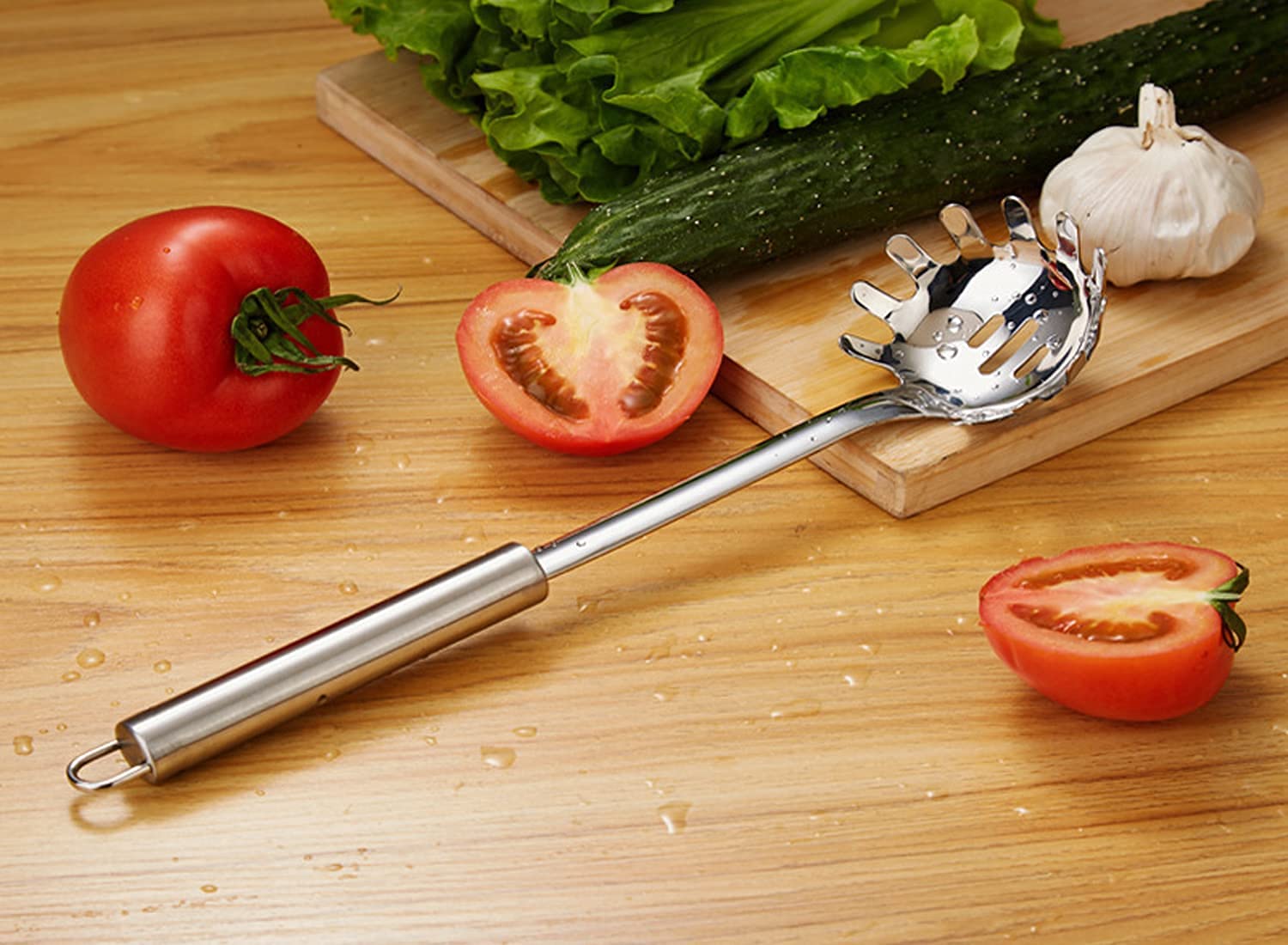 【Stainless Steel】: Made from high quality stainless steel. Resistant against rust and corrosion. Specially designed tooth spacing helps you prevent spilling your noodles.