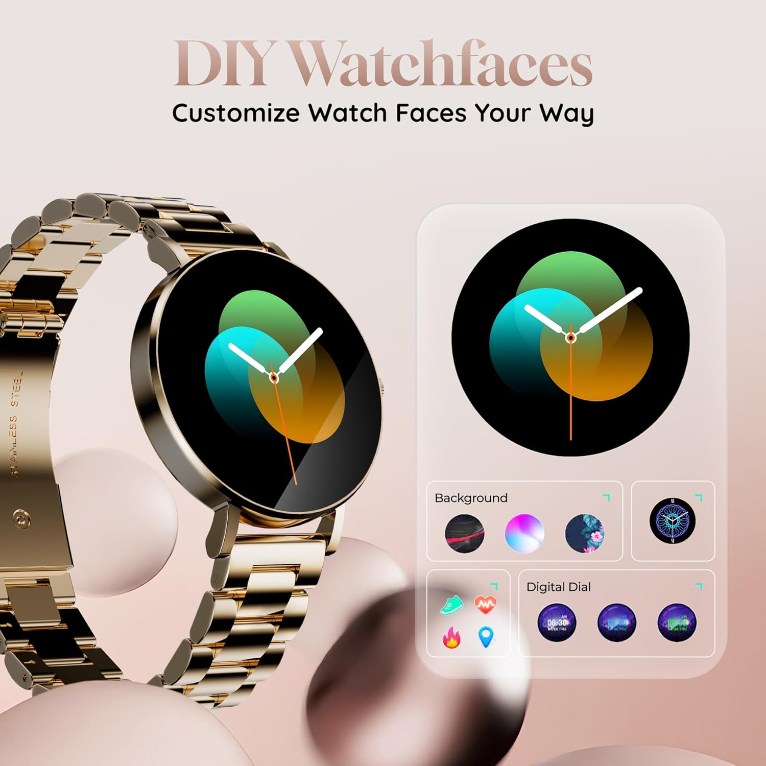 DESIGN: Stylish women’s smartwatch with sleek aesthetics and comfortable fit for everyday wear