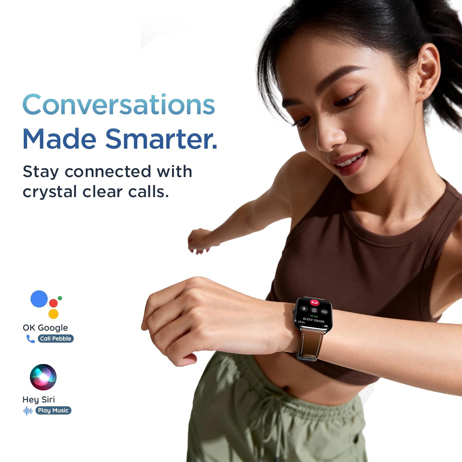 Pebble Newly Launched Royale Edge 1.93” Curved AMOLED Display Smartwatch with Always-On Display | Premium Slim Design| Rotating Crown | Bluetooth Calling | Health Suite | Premium Strap – Brown