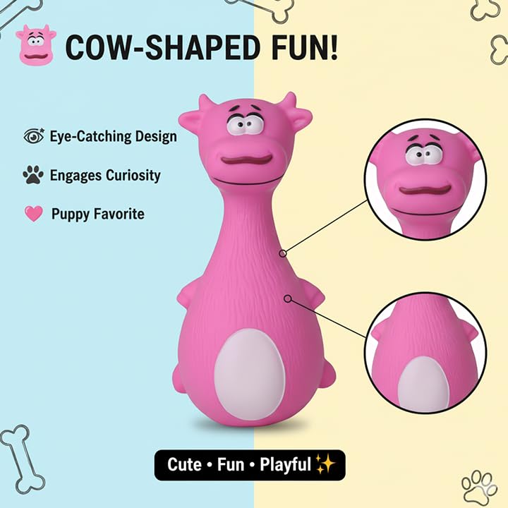Cow-Shaped Design: This fun and adorable cow-shaped chew toy features an engaging design that will capture your dog’s attention and provide hours of fun.