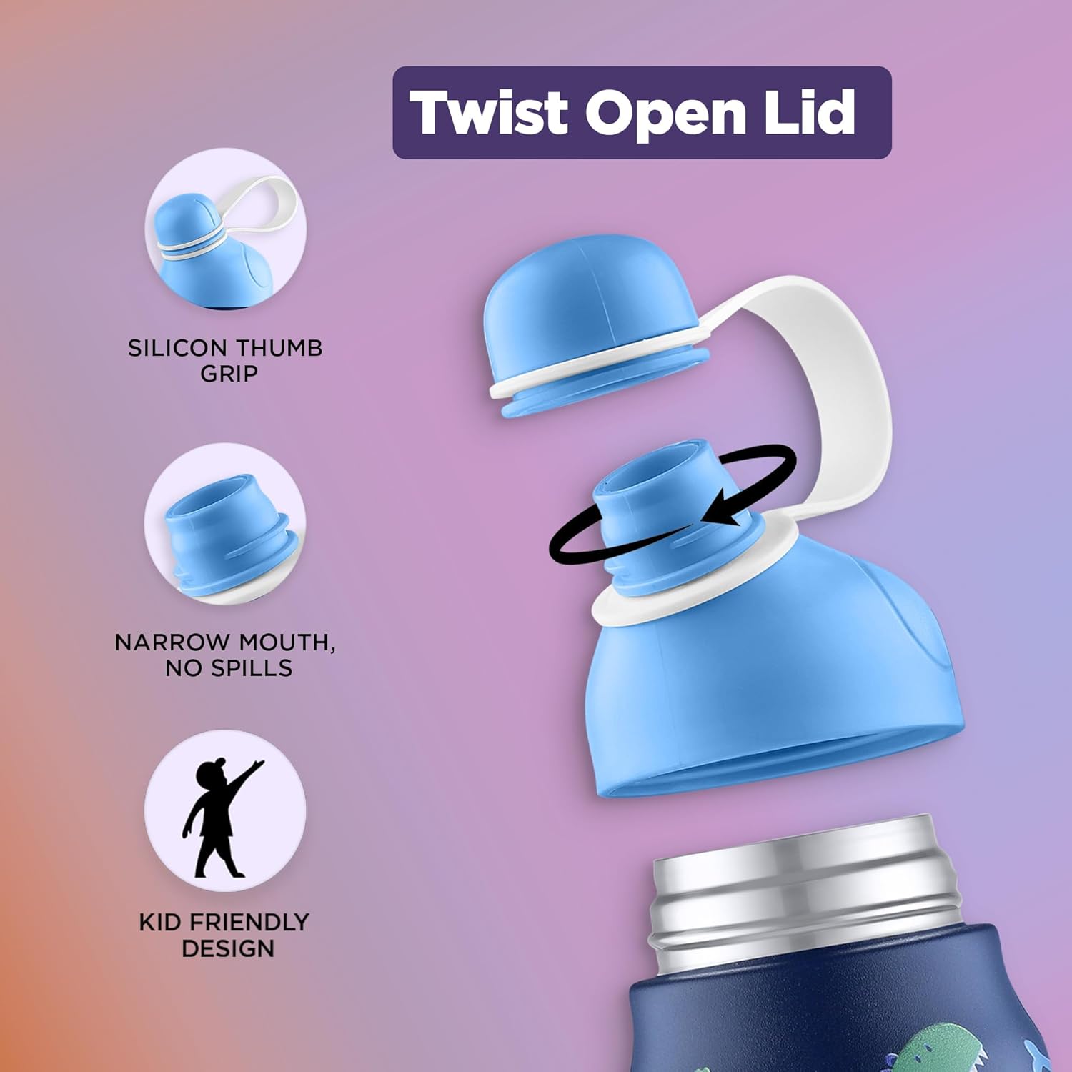 Convenient Design: Featuring silicon thumb grip handle with an EVA foam base for effortless daily use, perfect for school, hikes, and work, fitting well in bags, car & stroller cup holders
