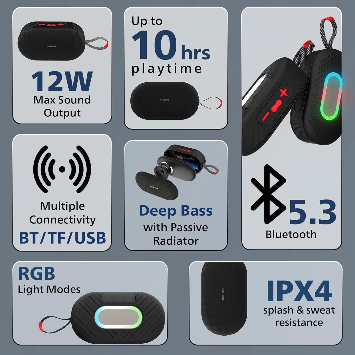 Powerful 12W Sound Output: Enjoy rich and immersive audio with enhanced deep bass powered by a built-in passive radiator