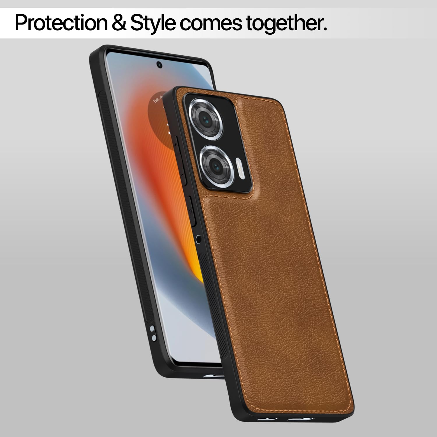 Pikkme Back Cover | Flexible Pu Leather | Full Camera Protection | Raised Edges | Super Soft-Touch | Bumper Case for Motorola Moto Edge 50 Fusion 5G / Motorola Moto G96 5G (Brown)