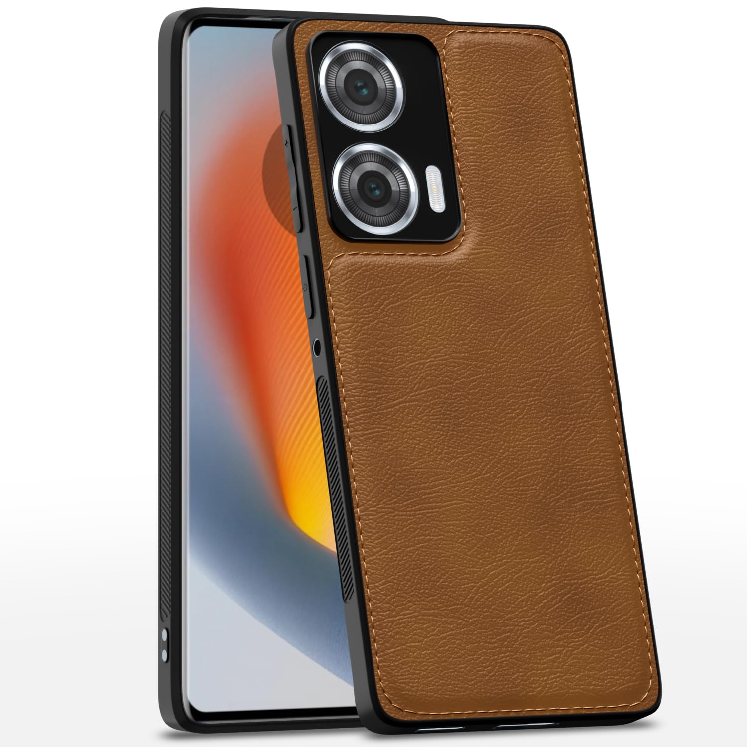 Pikkme Back Cover | Flexible Pu Leather | Full Camera Protection | Raised Edges | Super Soft-Touch | Bumper Case for Motorola Moto Edge 50 Fusion 5G / Motorola Moto G96 5G (Brown)