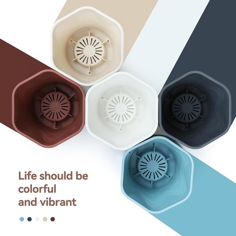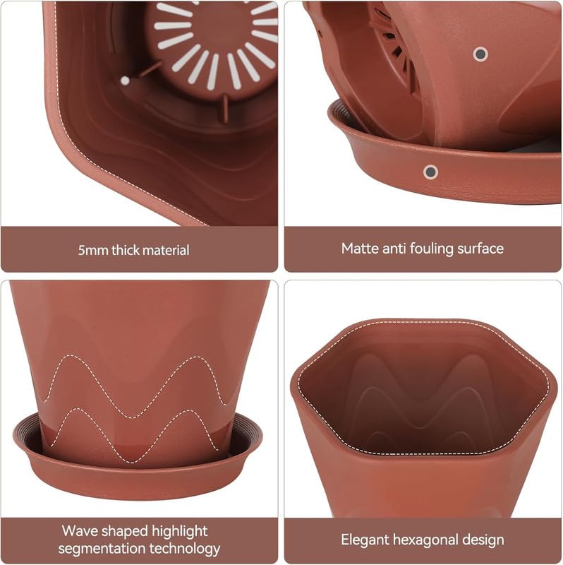 Efficient Drainage System with Saucers: Each plant container is equipped with a drainage hole and matching saucer, allowing excess water to drain properly, helps to prevent overwatering and root rot. This feature helps to promote healthy plant growth and maintains cleanliness, making them ideal for various indoor and outdoor plants.
