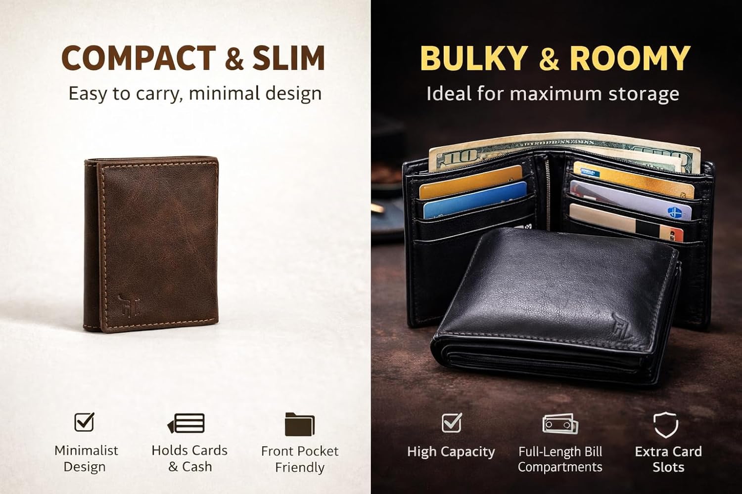 Slim Yet Spacious Design: Compact structure holds multiple cards, cash and coins without creating pocket bulk