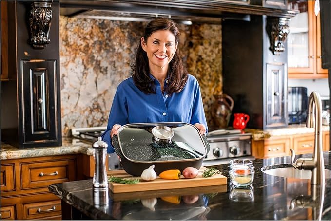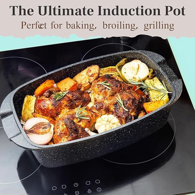 Versatile Oven & Stovetop Use: Designed for ultimate flexibility, this deep rectangular pan is perfect for roasting meats, baking casseroles, simmering stews, and more – safely transitions from stovetop to oven.