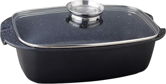 Versatile Oven & Stovetop Use: Designed for ultimate flexibility, this deep rectangular pan is perfect for roasting meats, baking casseroles, simmering stews, and more – safely transitions from stovetop to oven.