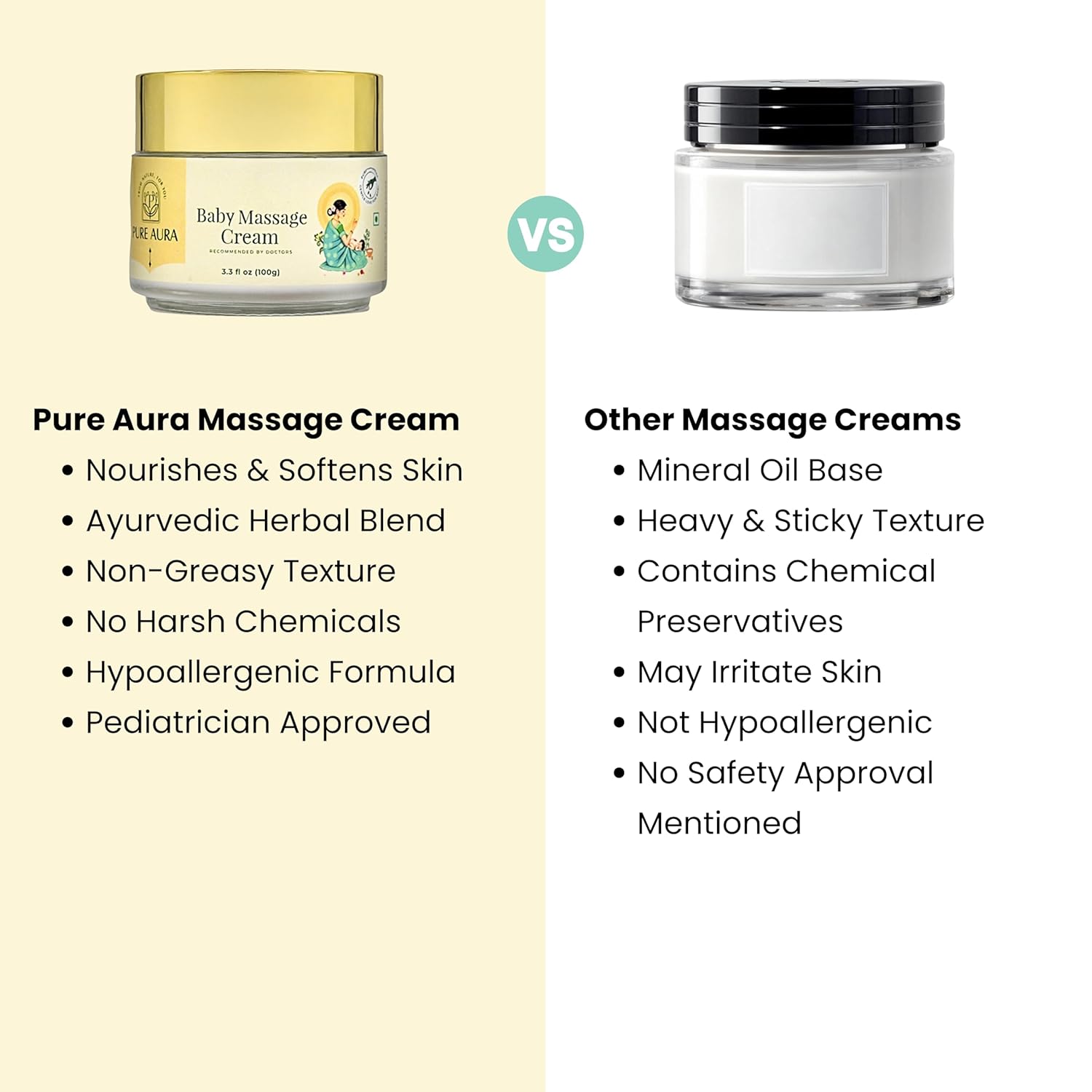 SAFE FORMULATION: Free from harsh chemicals, suitable for delicate baby skin, with 100g of cream in an elegant glass jar with gold cap