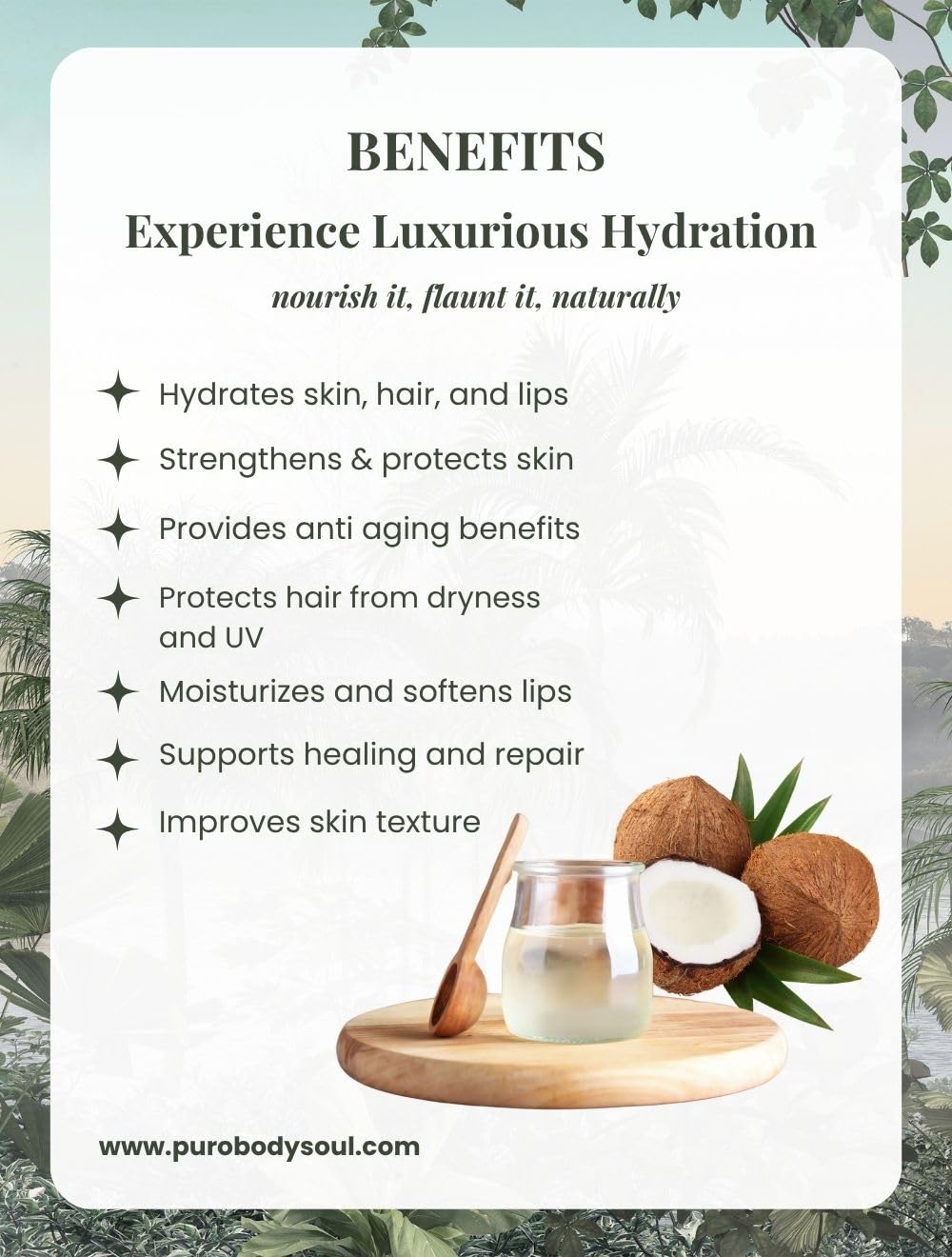 Deep Hydration – Nourishes skin and hair, leaving them soft, smooth, and hydrated.