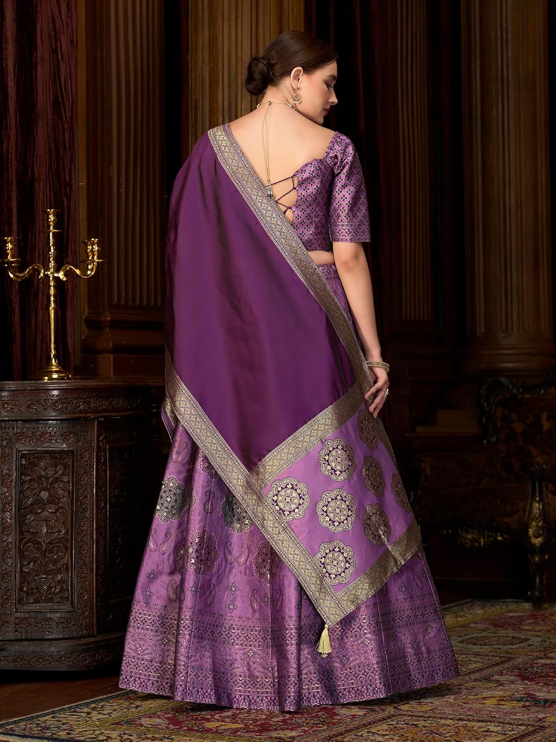PURVAJA Women’s Kanjiwaram Semi-Stitched Lehenga choli