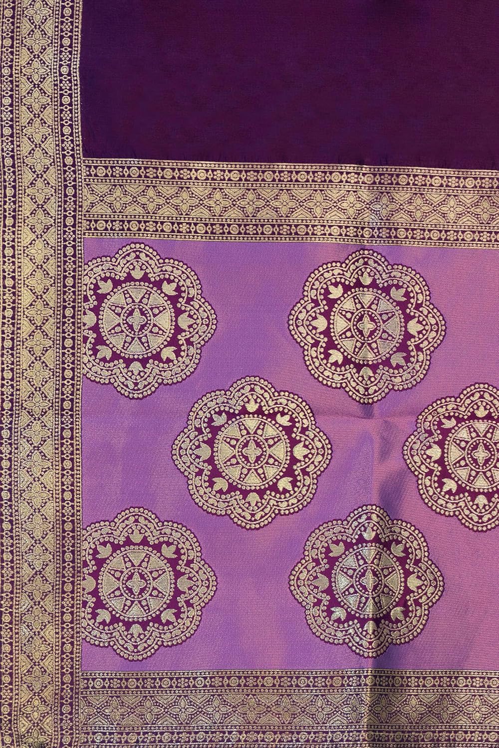 Drape yourself in timeless elegance with this exquisite Kanjivaram lehenga choli, adorned with intricate zari work and a lustrous double-tone shine that radiates festive charm. The lehenga features classic bandhani-inspired motifs, blending tradition with regal artistry. A striking contrast dupatta with delicate tassel accents completes the ensemble, adding movement and grace. Perfect for festivals and weddings, this masterpiece brings together heritage craftsmanship and contemporary celebration style.