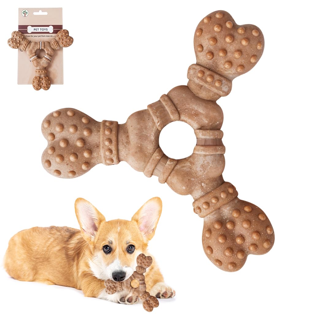 UNIQUE THREE-WAY BONE-SHAPED DESIGN: This innovative chew toys three-way bone-shaped structure offers your dog multiple gripping and chewing angles, encouraging hours of active play. Unleash your pets natural chewing instincts and promote healthy, interactive fun by giving them this creative and durable toy.