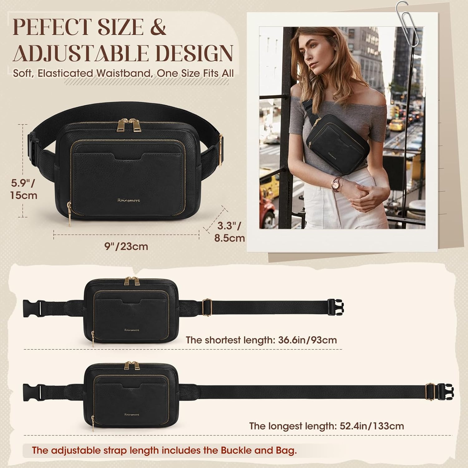 RAINSMORE Fanny Packs for Women Leather Waist Packs Bag with Adjustable Strap Crossbody Belt Bag
