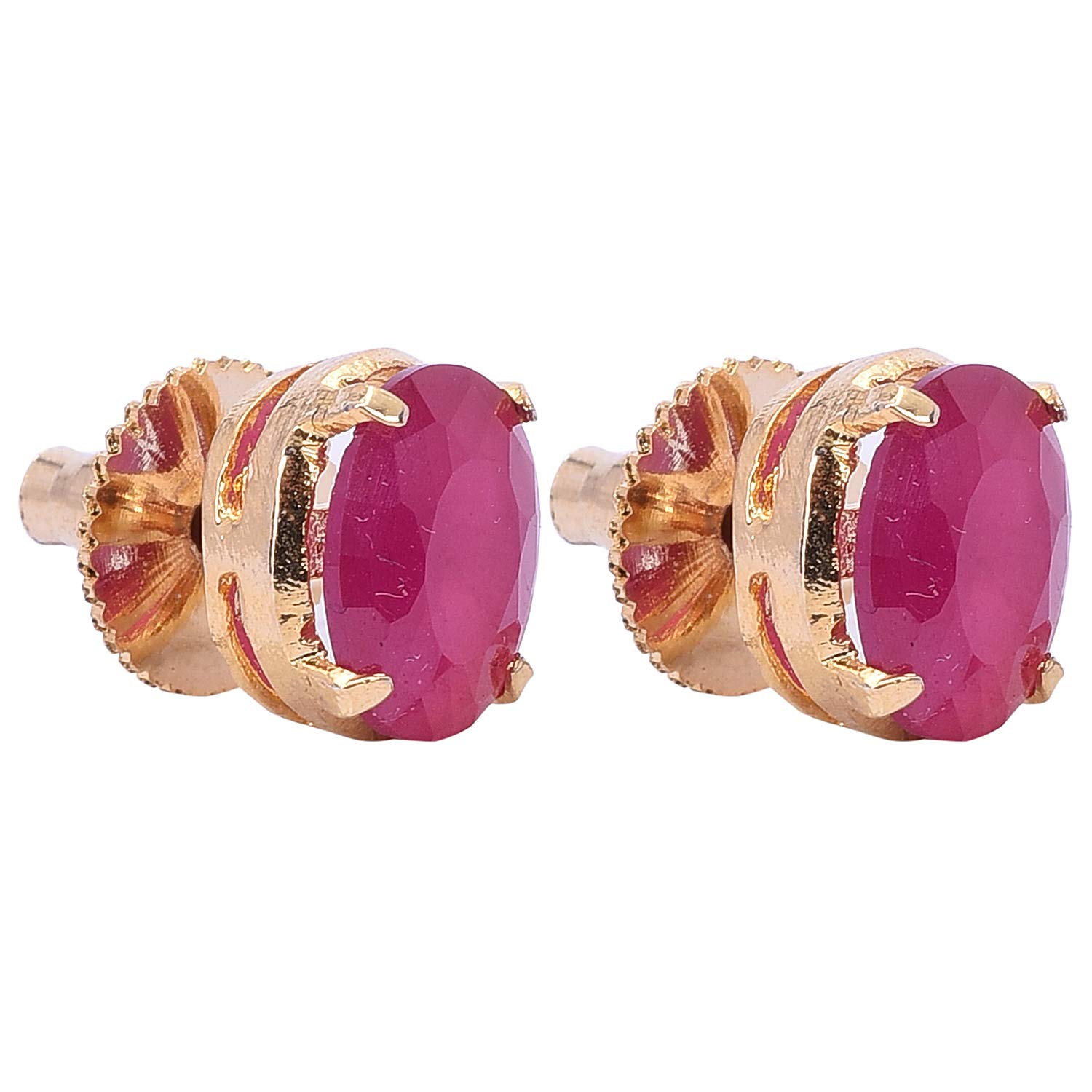 Ratnavali Jewels Golden Silver Plated Oval Pink Ruby CZ American Diamond Stylish 9mm Stud Tops Earrings For Women/Girls RV3206R