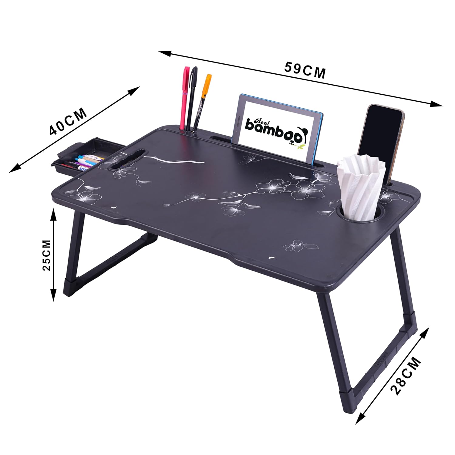Real Bamboo Wood Smart Multipurpose Foldable Laptop Table with Cup Holder, Study Table, Bed Table, Breakfast Table, Portable,Ergonomic & Rounded Edges/Non-Slip Legs~~ (US Biding B-Flower)
