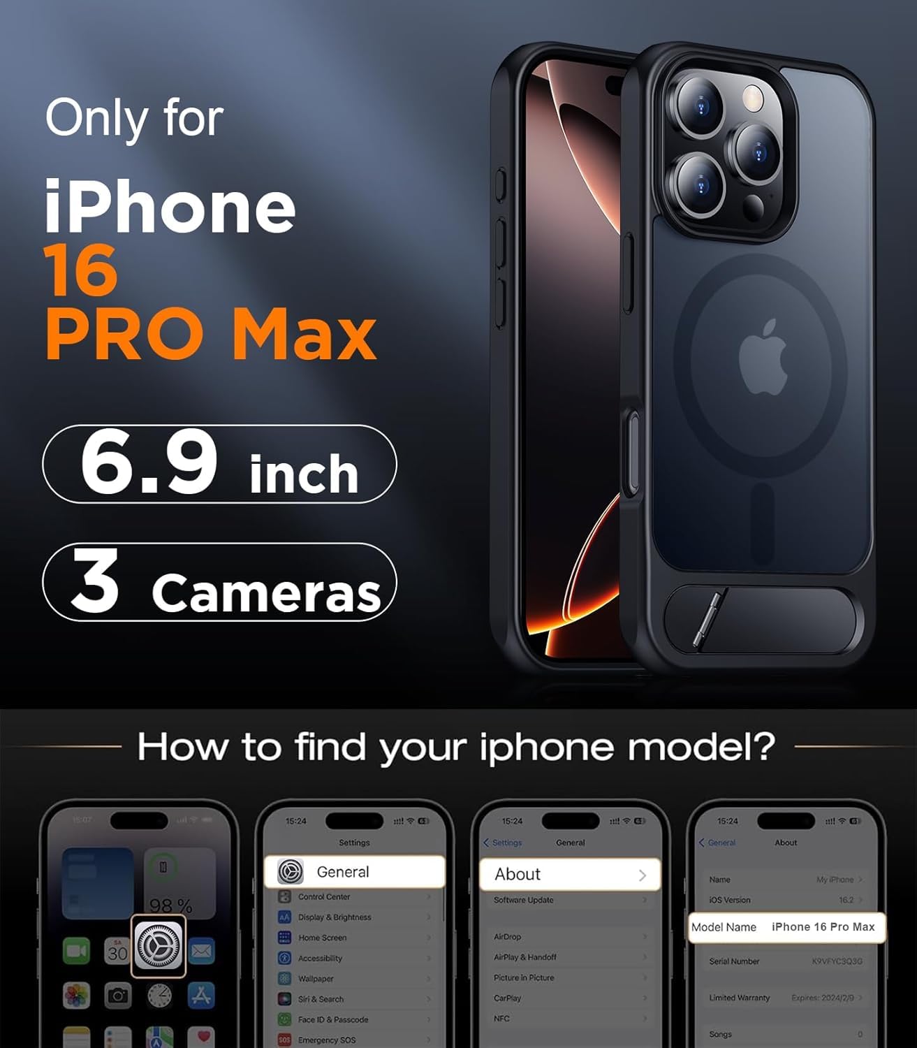 【Creative Frame-less Case Design 】Design for iPhone 16 Pro Max (6.9) Compatible with wireless charging with the case on. Restore the real original feel.