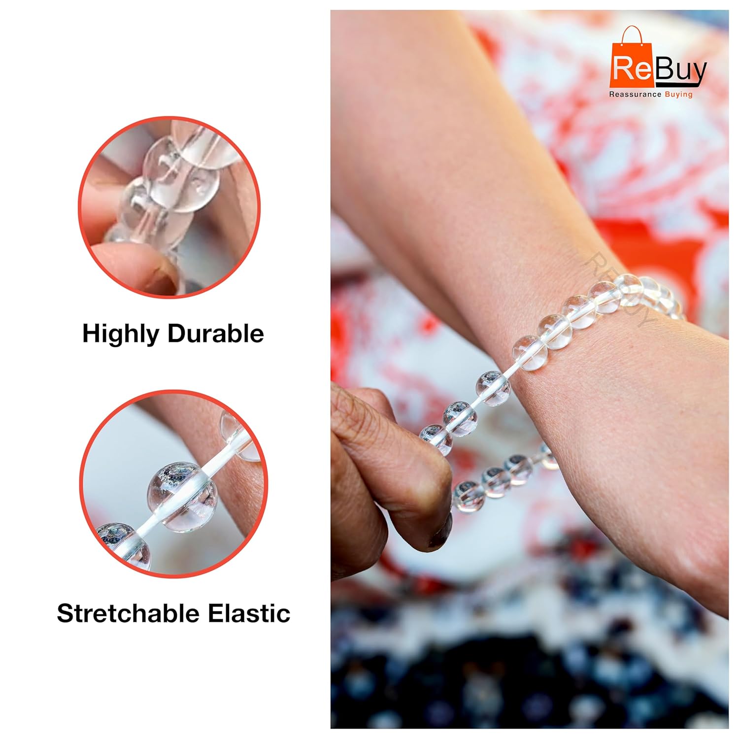 Handmade with Precision – Each Clear Quartz bead is hand-selected, polished, and carefully strung with attention to detail., Premium Elastic Cord – Durable and stretchable for a secure, long-lasting fit, Smooth, Comfortable Wear – Lightweight and skin-friendly, perfect for daily wear without irritation.