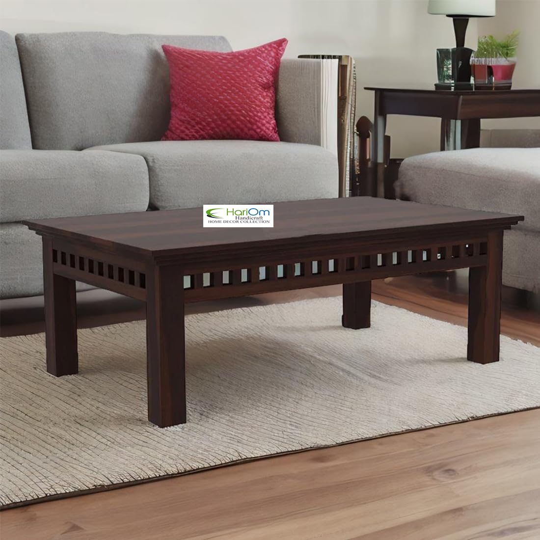 Hariom Handicraft Sheesham Wood Coffee Table: Crafted from solid Sheesham wood (Indian Rosewood) for lasting beauty and durability.