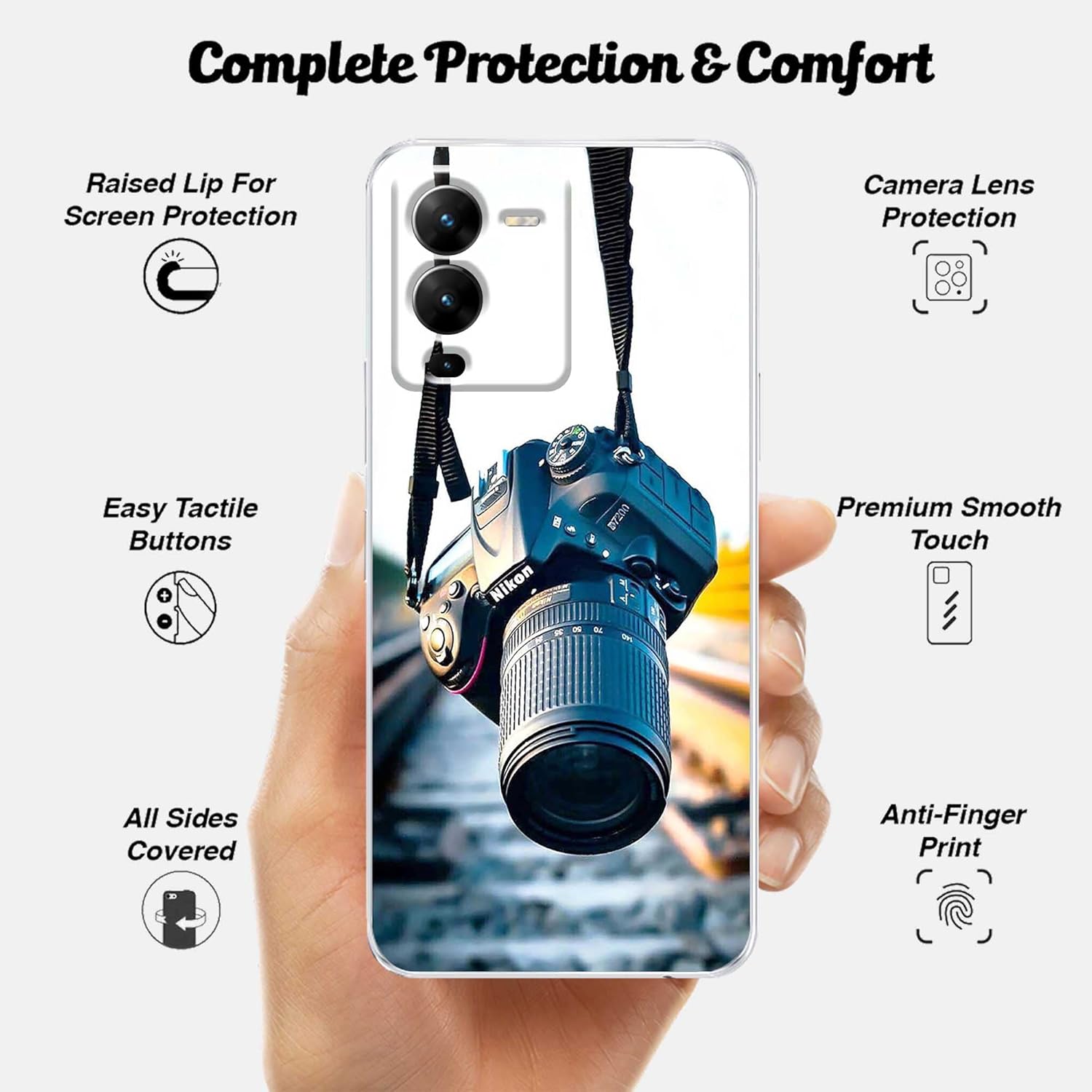 Retroart Back Cover for Vivo V25 Pro DSLR Camera Lover Photography Hanging Camera Photographer Printed Designer Back Cover and case for Mobile Phone | Uv_VIO_V25_Pro_94013